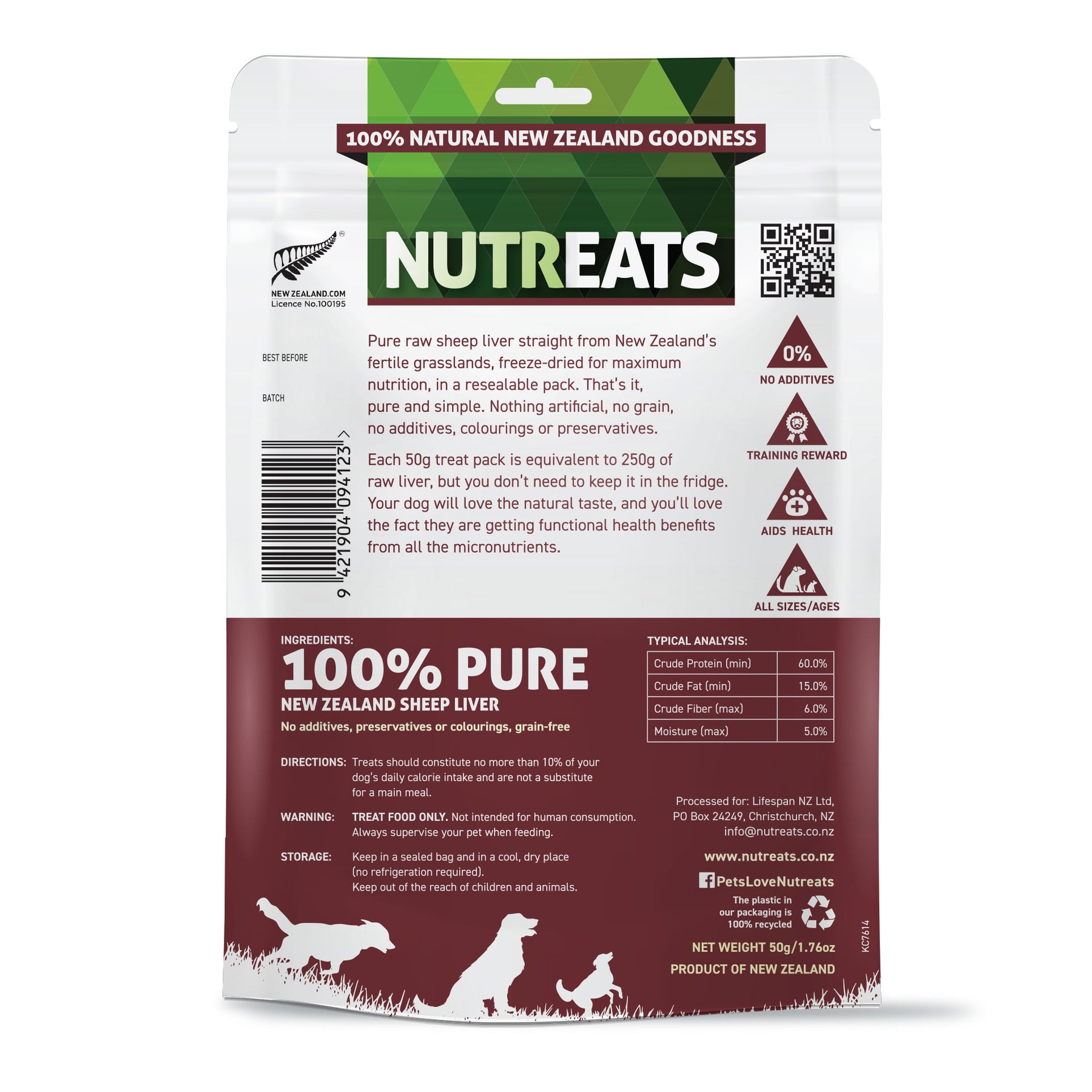 Each 50g treat pack is equivalent to 250g of raw liver, but you don’t need to keep it in the fridge. Your dog will love the natural taste, and you’ll love the fact they are getting functional health benefits from all the micronutrients.